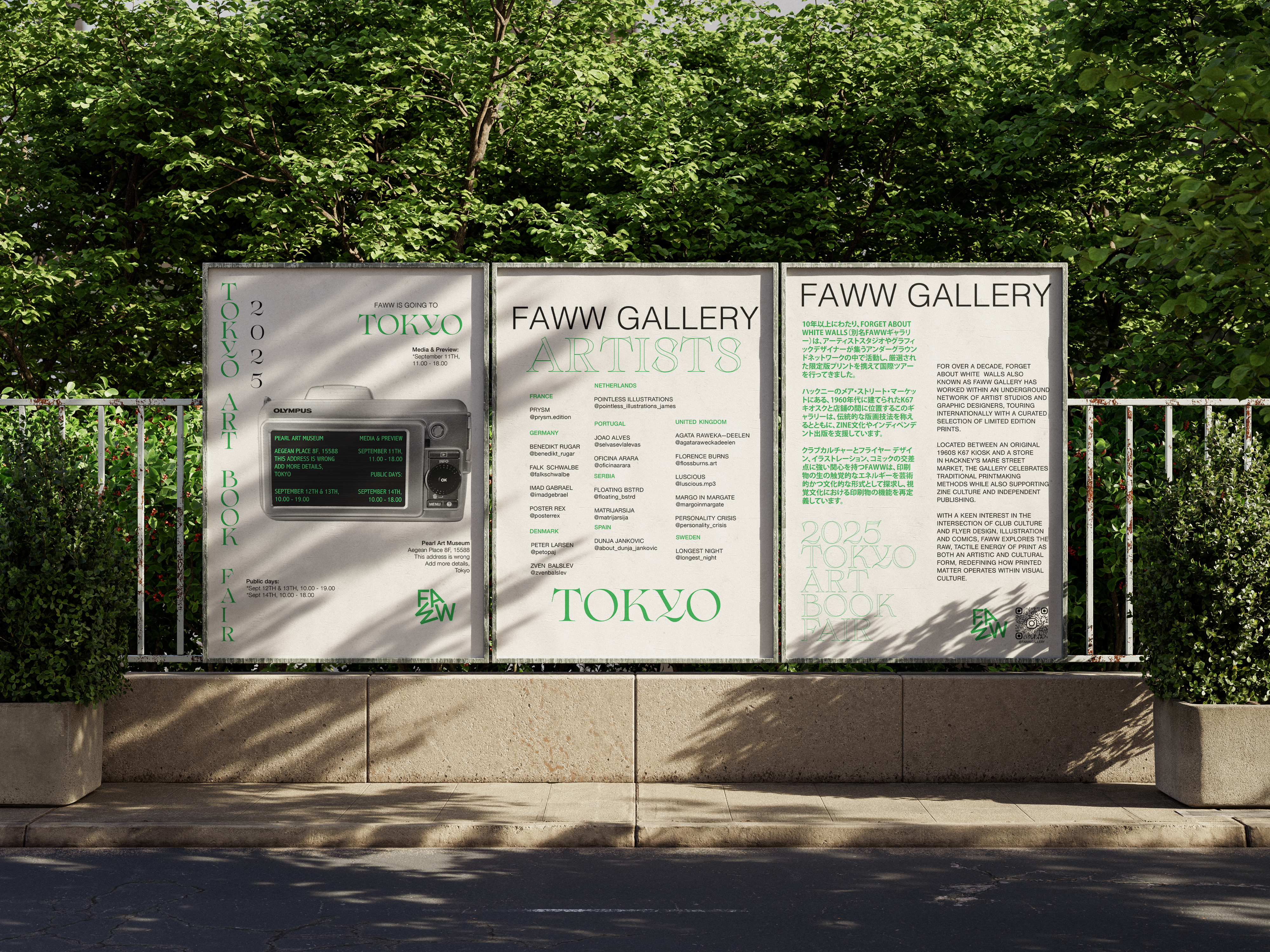 I designed a promotional poster for the participation of the gallery Forget About White Walls in the Tokyo Art Book Fair. I was asked to draw inspiration from a previous poster but I changed the main imagery to represent Tokyo through the use of a Japanese film camera.